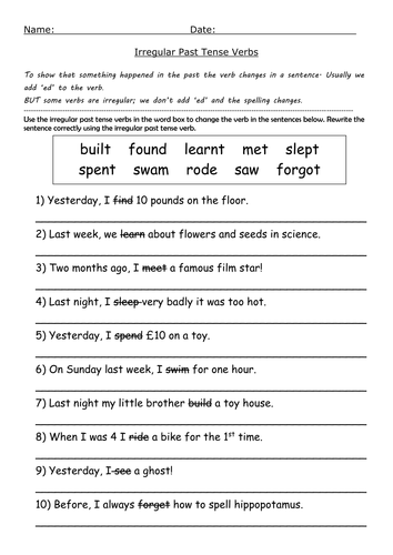 But verbs change depending on the tense that they are being used for.They will identify verbs in isolation and in sentences and even write their own sentences.Irregular verbs worksheets past and present tenses.