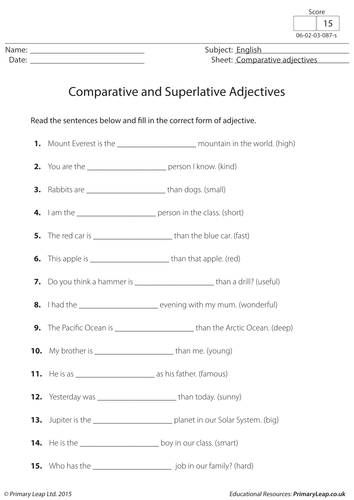 Comparative and superlative worksheets with pdf practice.Comparative adjectives worksheet.A comparative adjective is used to compare two nouns denoting a higher or lower degree of quality with respect to one another.