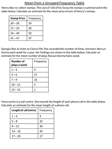 Worksheets on tables and data for 6th grade.