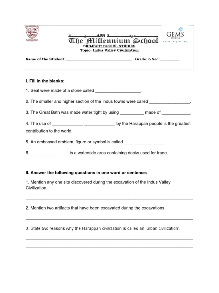 Indus valley civilization worksheets for kids.By about 2500 bce the indus valley civilization had developed at harappa and other sites.This civilization existed from about 3000 bce to about 1500 bce which means it existed at about the same time as the ancient sumerian and egyptian civilizations.Urban planning and architecture.