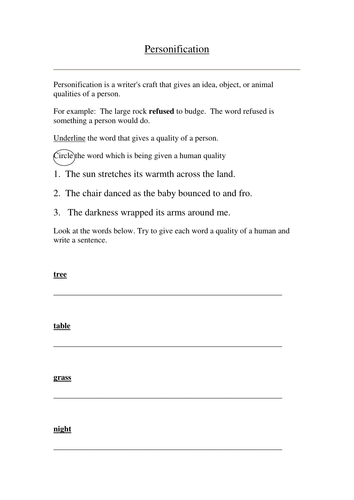 This one contains language that is a bit more difficult than the other worksheets on this page.Sixth grade grade 6 personification questions you can create printable tests and worksheets from these grade 6 personification questions.The first two worksheets simply ask students to find and underline the personification in 10 questions.