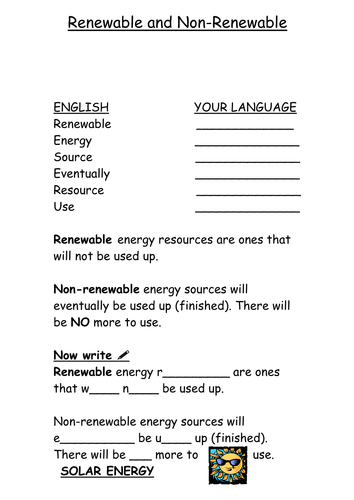 Live worksheets english renewable and non renewable energy sources and solar energy a classwork that can be used to reinforce the students knowledge about energy sources and solar energy.