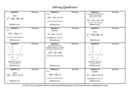 Worksheets with answers whether you want a homework some cover work or a lovely bit of extra practise this is the place for you.X2 6x 10 30 20.Quadratic functions factorising solving graphs and the discriminants key points a quadratic equation is an equation in the form ax2 bx c 0 where a 0.
