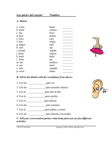 The spanish packet you may be interested most is the human body spanish worksheets and activities.The vocabulary which is covered includes.The verbs in this worksheet include.
